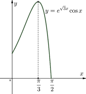 Find the value of $ \displaystyle x$ between $ \displaystyle 0$ and $ \displaystyle \frac{\pi}{2}$ for which the curve $\displaystyle y={{e}^{{\sqrt{3}x}}}\cos x$ has a stationary point. Determine whether it is a maximum or minimum point.